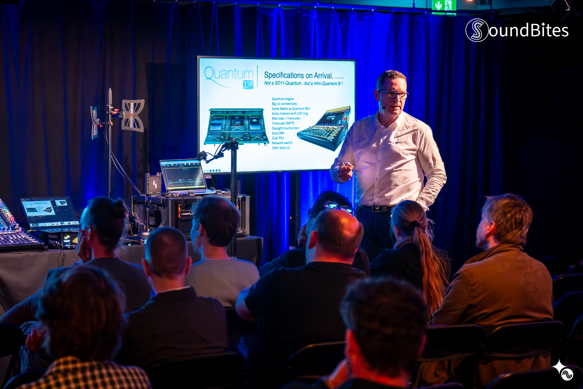 Het concept van SoundBites – elk uur een nieuwe, gerichte presentatie of demo – bleek een schot in de roos. Bezoekers lieten zich in hoog tempo bijpraten over de nieuwste ontwikkelingen. Absolute hoogtepunten waren de Nederlandse primeur van de Allen & Heath Avantis v2.0 met de nieuwe RackUltra FX, en de officiële lancering van TiMax als ons nieuwe spatial audio merk.
