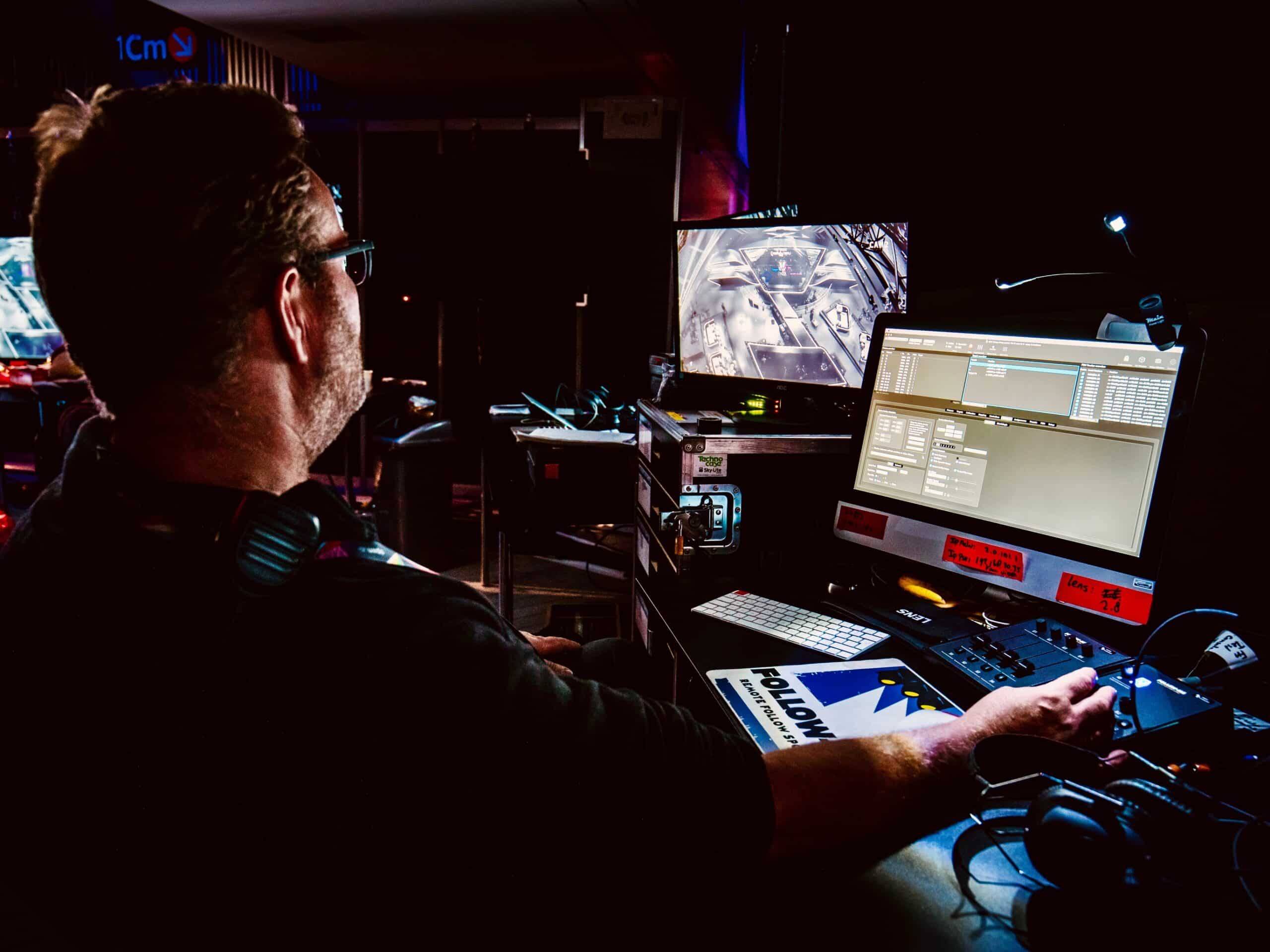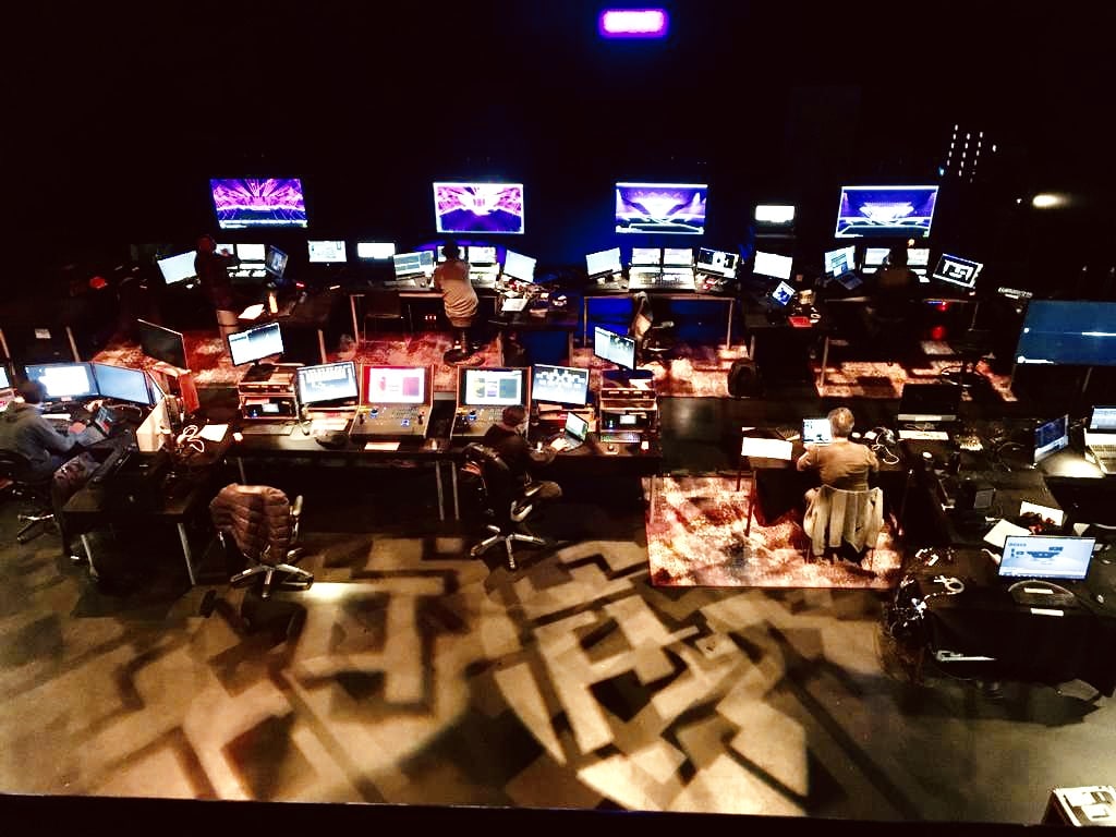 While the stage is being built in Rotterdam, rehearsals are already taking place in Amsterdam. These are virtual rehearsals made  possible by using sophisticated software. Lights, Video, Motion and Cameras are all integrated virtually so the director can see the results in his actual camerashots. Saves valuable time of the venue and of the performers!