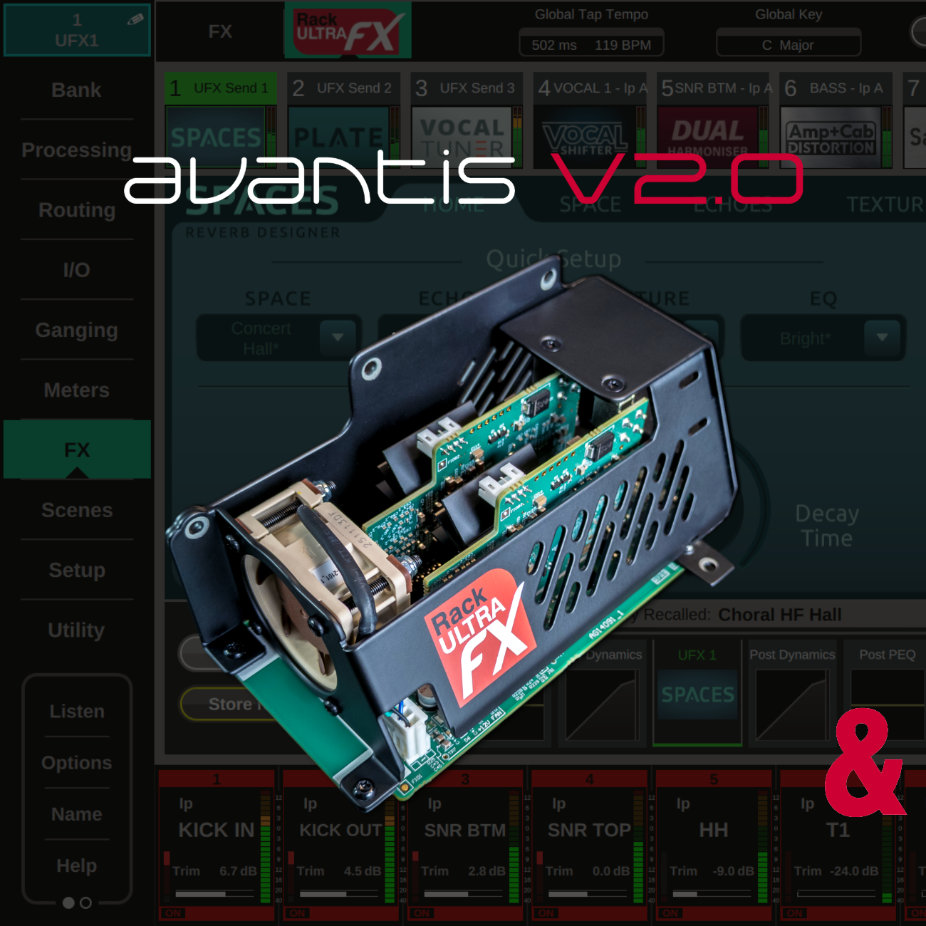 Verkrijgbaar in 2 formaten verzamelt Avantis alle technologie in een 64-kanaals, 42 configurable bus mixer met twee (voor de Avantis SOLO een) full HD touchscreens, een super flexibele workflow, uitgebreide I/O options, add-on processing vanuit de dLive en een onverwoestbaar metalen chassis.